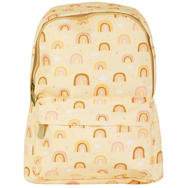 Deze leuke, kleine rugzakje met het thema rainbows van A Little Lovely Company, heeft het perfecte formaat voor peuters. Door het voorvak en extra binnenvak is er genoeg ruimte om alle spulletjes gescheiden te houden. De tas blijft altijd goed zitten, want dankzij de gesp zakken de verstelbare schouderbanden niet af. Deze tas is onderdeel van het thema: rainbows. Afmeting: 23.5x30x10 cm. Materiaal: lichtgewicht polyester. Inhoud: 7 liter.