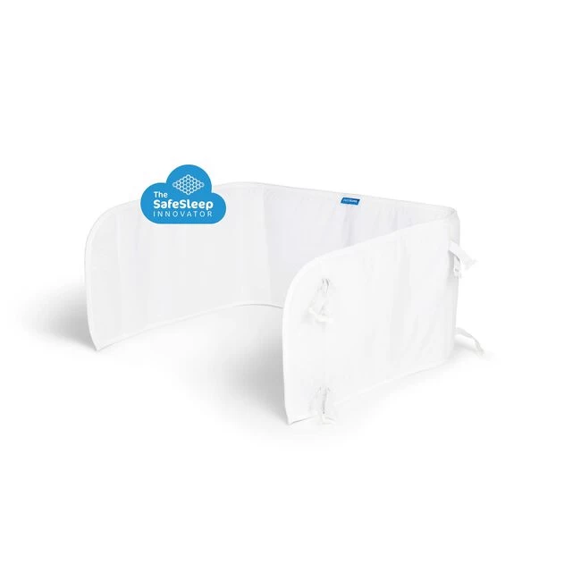 De bedomrander van Aerosleep voorkomt dat je kleintje zijn hoofdje stoot tegen de spijlen van zijn bedje. De unieke luchtdoorlatende structuur van de bedbumper zorgt ervoor dat je kleintje vrij kan ademen. Hierdoor in de bedomrander te gebruiken vanaf de geboorte. De bedomrander bestaat uit drie lagen: luchtlaag – voor de nodige ventilatie, laken – voor een zachte afwerking en een vulling zodat het hoofdje van je kindje wordt beschermd tegen de spijlen van het bedje of box. Kan gebruikt worden bij bedjes van 60x120cm en 70x140cm en in boxen. Wasbaar op 40 graden. Kleur: wit
