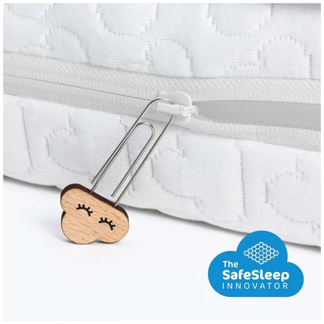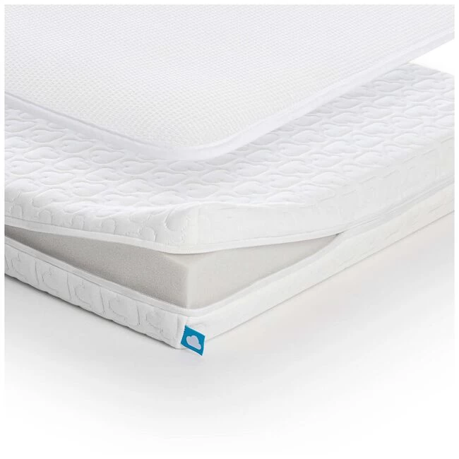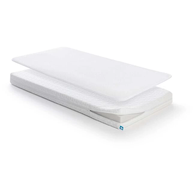 De Sleep Safe Essential Pack van Aerosleep bestaat uit een matras en een unieke matrasbeschermer. Dankzij de innovatieve technologie van Aerosleep zorgt dit ervoor dat je baby vrij kan ademen, in een veilige en gezonde slaapomgeving. Het materiaal van het matras is Airfelt, een innovatief materiaal met een open structuur wat zorgt voor een goede ondersteuning. De afritsbare matrashoes is praktisch in onderhoud en kan je wassen op 60 graden. De afneembare matrasbeschermer bestaat uit een speciale 3D-honingraadstructuur. Dankzij deze technologie ligt je kleintje op een luchtlaag, waardoor het ongehinderd kan ademen als het op zijn buikje terechtkomt. Afmeting:60×120 cm en (ongeveer) 10 cm dik