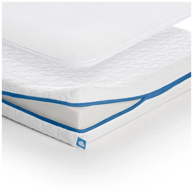 De Sleep Safe Evolution Pack van AeroSleep bestaat uit een matras en een unieke matrasbeschermer. De innovatieve technologie zorgt ervoor dat je baby vrij kan ademen in een veilige en gezonde slaapomgeving. De stevige structuur van het koudschuim-matras zorgt voor een perfecte rug ondersteuning. De afritsbare matrashoes combineert een aangename zachtheid met een innovatieve structuur, die zorgt voor ventilatie van de matraskern, zodat de matras langer meegaat. De afneembare matrasbeschermer bestaat uit een speciaal 3D-honingraatstructuur. Dankzij deze technologie ligt je kleintje op een luchtlaagje, waardoor het ongehinderd kan ademen als het op zijn buikje terechtkomt. Het matras kan worden gewassen op een temperatuur van 60 graden. Formaat: 70x140cm en (ongeveer) 10 cm dik. Het matras is ook beschikbaar in de maat: 60x120cm