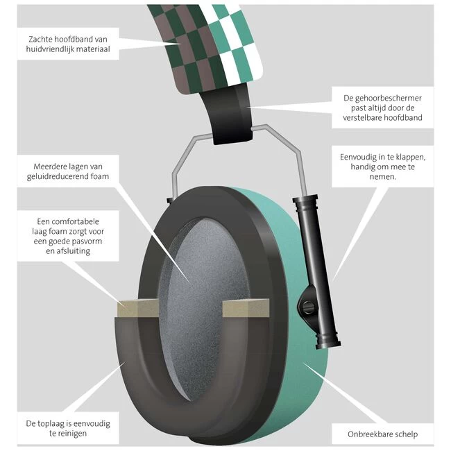Deze mintkleurige gehoorbeschermers van Alecto zijn speciaal ontworpen om de oren van je kindje te beschermen tegen harde geluiden. De oorbeschermers zijn ideal voor gebruik tijdens festivals en open-dagen, maar bijvoorbeeld ook zeer geschikt voor oud & nieuw tegen de harde knallen van het vuurwerk. De oorkappen geven een geluidsreducering van 25.4 dB. De oorkappen hebben een universele pasvorm en zijn geschikt voor kinderen vanaf 18 maanden. De oorkappen voelen zeer comfortabel aan door de zachte hoofdband en de 2-puntbevestiging wat zorgt voor een uitstekende drukverdeling. De beschermer is inklapbaar, waardoor het makkelijk op te bergen en mee te nemen is.