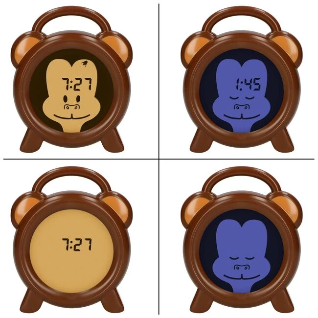 Deze slaaptrainer van Alecto helpt je kindje een regelmatig slaapritme te ontwikkelen. De slaaptrainer kan zowel als klok en als wekker gebruikt worden. Je stelt eenmalig de wektijd in en de slaaptrainer doet de rest. Wanneer het tijd is om te gaan slapen kleurt het scherm blauw en heeft het aapje zijn ogen gesloten. Wanneer je kindje mag opstaan kleurt het scherm oranje en opent het aapje zijn ogen. Zo weet je kindje precies wanneer hij of zij mag opstaan. Verder is de draadloze slaaptrainer eenvoudig te bedienen door middel van de knoppen aan de achterkant. Met behulp van de meegeleverde USB kabel kan de slaaptrainer worden opgeladen. Op het moment dat de slaaptrainer opgeladen is, is deze draadloos.