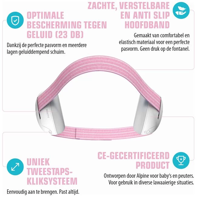 De Alpine Muffy Baby Gehoorbeschermer s perfect om het gehoor van je kindje te beschermen tegen harde geluiden! Het gehoor van kleine kinderen is nog erg gevoelig en ze kunnen bij veel geluid al snel een gehoorbeschadiging oplopen. Bovendien kan je de beschermer ook gebruiken om overprikkeling bij je kindje te voorkomen of er voor te zorgen dat je kindje onderweg rustig kan slapen. De gehoorbeschermer is voorzien van een gemakkelijk ontwerp waarbij je de oorkappen op de gewenste plaats op de hoofdband kan bevestigen. Dankzij de zachte elastieken hoofdband zal je kindje het comfortabel kunnen dragen vanaf 3 maanden. Je kan de elastieken band eenvoudig verstellen dankzij de klittenbandsluiting. Verder dempt de Alpine Muffy Baby Gehoorbeschermer harde geluiden met 23 dB en wordt geleverd met Protect&Go opbergzakje.