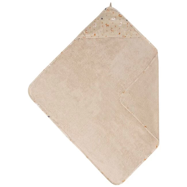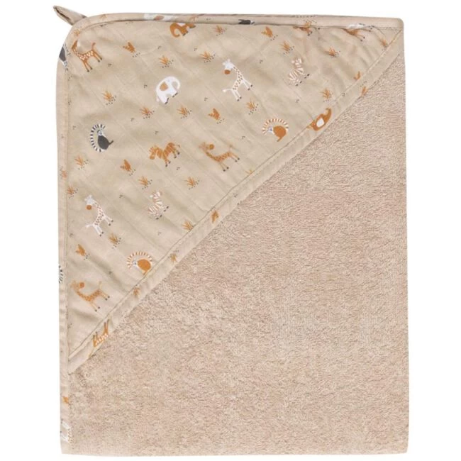 Deze badcape van Bebe-jou voelt heerlijk zacht aan. De badcape is taupe van kleur en heeft een leuke steppe print. De badcape kan gebruikt worden op verschillende momenten. Bijvoorbeeld als wikkeldeken tijdens voedingen of om je kindje warm te houden na een heerlijk bad. De badcape is gemaakt van katoen en is onderdeel van de BeBe-jou badserie steppe. Wasvoorschrift: wassen op 30 graden met gelijke kleuren.