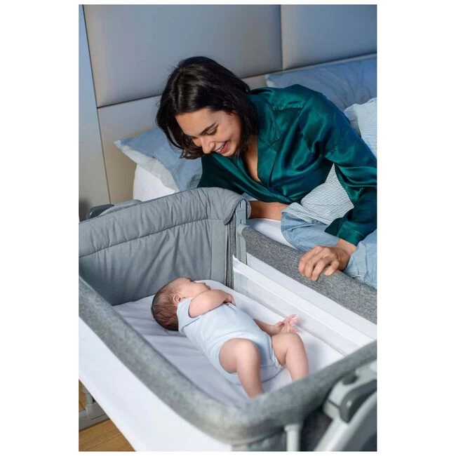 Chicco Next to Me Magic is het co-sleeper wiegje dat ervoor zorgt dat ouders dicht bij hun kindje kunnen slapen voor een comfortabelere nacht. Het nieuwe zijdelingse systeem om het wiegje te openen is nog praktischer en gemakkelijker te gebruiken. De zijkant kan heel vlot op- en neerwaarts worden geschoven met één hand, vanuit het ouderlijke bed, zonder te moeten opstaan. Dit wiegje is verstelbaar in de hoogte op 11 standen zodat het past bij elk bed. Zijn inschuifbare poten zorgen ervoor dat het zelfs past bij bedden met lades. De wieg is voorzien van een matras met bekleding in ademend 3D-netweefsel voor een betere luchtcirculatie. Bekijk ook onze andere kleuren.