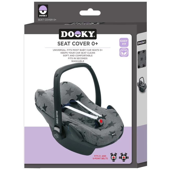 Met deze Dooky Seat Cover kun je de kinderstoel groep 0+ leuk bekleden met een hippe print. Het beschermd je autostoeltje en daarnaast ziet het er ook nog leuk uit. De Dooky Seat Cover kun je makkelijk bevestigen door middel van elastiek aan alle merken (exclusief Maxi-Cosi Pebble en Maxi-Cosi Pebble Plus) groep 0+ autostoeltjes. De Dooky Seat cover is gemaakt van ademend katoen. Dooky Seat Cover is verkrijgbaar is diverse designs en kleuren.
