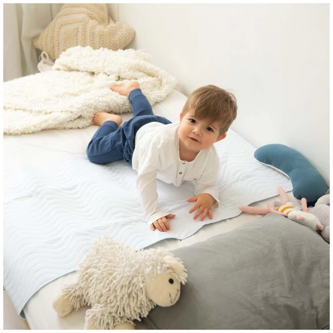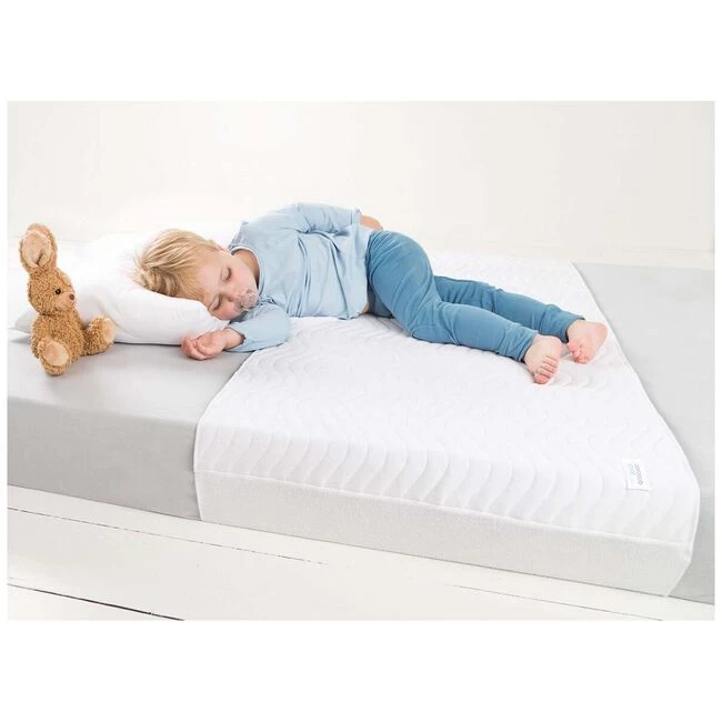 De absoplus is een zeer absorberende laken en matrasbeschermer. Het is perfect voor baby’s en ook voor kinderen die ’s nachts problemen hebben met bedplassen. Het is een volledig waterdichte, gevoerde hoes met een maximale luchtstroom die bestaat uit 5 verschillende lagen. Het is zeer absorberend en kan ongeveer 2 liter per m2 aan. Door de unieke manier waarop de matrasbeschermer gemaakt is, kan een zeer grote hoeveelheid vloeistof tot in de onderste lagen worden opgenomen, waardoor de bovenste laag droog blijft. Zeer praktisch: de matrasbeschermer kan direct op het hoeslaken worden geplaatst en kan daarom snel worden vervangen. De laken past zowel op de lengte van een babymatras (60x120cm) als op de breedte van een standaardmatras (900 x200cm).