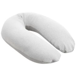 Het Doomoo Buddy voedingskussen is een groot en veelzijdig kussen zowel voor de baby als voor de ouder(s). Dankzij zijn vorm, buigzaamheid en soepelheid kan het lichaam zich volledig ontspannen en tot rust komen. Het biedt comfort tijdens de zwangerschap, bij borstvoeding en aan baby’s. De hoes is afneembaar en wasbaar op 30 graden De onderzijde van het kussen is geheel grijs. Afmeting: 170 cm van punt tot punt. De stof van Doomoo Buddy is 95% biologisch katoen en 5% elastan. De vulling bestaat uit microkorreltjes uit polystyreen. De hoes van het kussen is wasbaar op 30 graden.