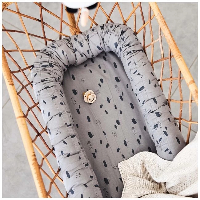 Je kindje ligt heerlijk in dit babynestje van Jollein. Het babynestje heeft een leuke print met zwarte spots. De opstaande gewatteerde rand geeft je kindje een veilig en geborgen gevoel. Je kan het nestje gebruiken in de box of gezellig bij jou op de bank. Daarnaast is het babynestje makkelijk op mee te nemen. Zo kan je kindje overal comfortabel liggen. beschikbaar in diverse kleuren