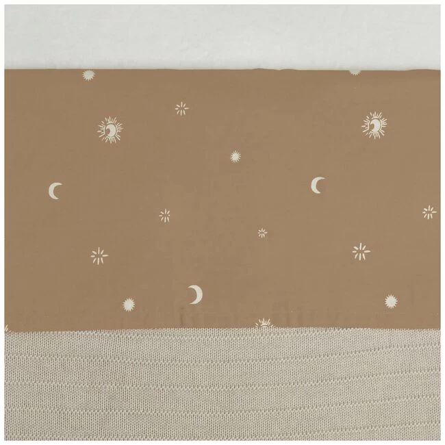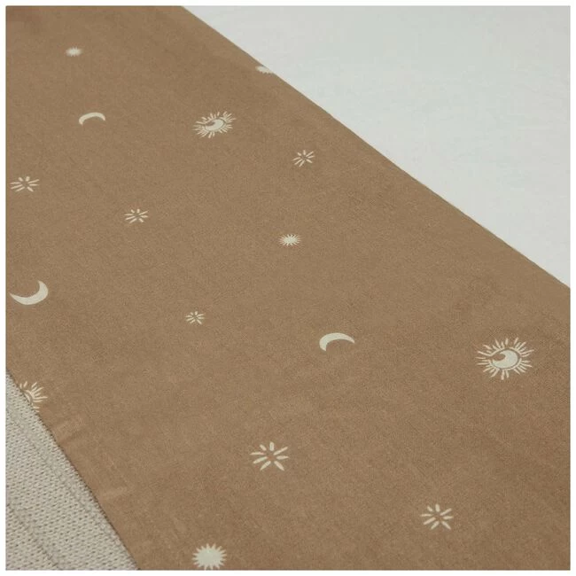Wat zal jouw kleintje lekker slapen onder dit Jollein lakentje met all-over Stargaze print! Het laken heeft een prachtige opdruk met een zonnetje, maantje en sterretje uit de serie Stargaze van Jollein. Het laken is geschikt voor het ledikant en heeft de afmeting 100×150 cm. Ook verkrijgbaar in wieg formaat 75×100 cm. Materiaal: 100% katoen. Wasvoorschrift: Het lakentje kan gewassen worden op maximaal 40 graden. Check het waslabel voor de uitgebreide wasinstructies.