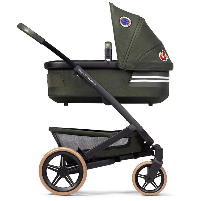 Joolz en Filling Pieces hebben de handen ineengeslagen om de kracht van een community te vieren en dat support alle verschil maakt. De samenwerking komt tot leven in de vorm van een limited edition Joolz Geo³ kinderwagen, geïnspireerd op het iconische Filling Pieces Varsity Jacket,een sportklassieker. Gemaakt van een premium twill-achtige stof, in een rustgevende groene kleur, signature design details zoals de twee strepen en opvallende, met de hand ontworpen patches, co-branded geborduurde leatherette duw- en veiligheidsbeugel en lichtbruine wielen die doen denken aan sneakers. Daarnaast bestaat deze wagen uit duurzame stoffen gemaakt van gerecyclede plastic flessen. Deze Limited Edition limited edition kinderwagen is enkel verkrijgbaar bij geselecteerde retail partners. Wordt geleverd met een paar bijpassende limited-edition babysneakers, ter waarde van €65,-. Deze kinderwagen is te zien in al onze warenhuizen.