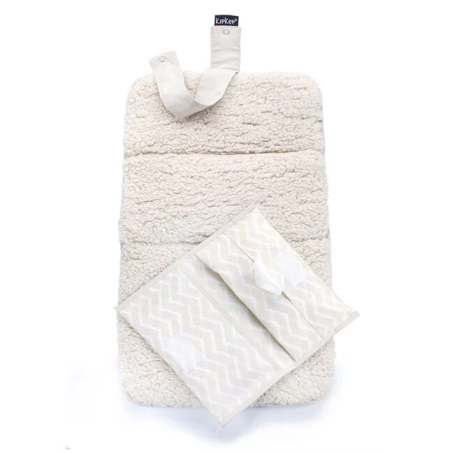 Handige combiset van KipKep bestaande uit een verschoonmatje en luieretuitje. Het verschoonmatje is zacht en comfortabel en heeft naast een gecoate kant voor de luiers ook een teddy kant. Door de teddy kant dus ook ideaal als matje voor tijdens een uitstapje. Super handig: indien vies kan het matje gewassen worden in de wasmachine. Onder de sluitstrap past het bijpassende luieretuitje welke bij deze set geleverd wordt. Het kan zo als compact pakketje meegenomen worden. Het gecoate materiaal is 100% PVC vrij en voelt niet plastic aan. Gemaakt van gerecyclede materialen.