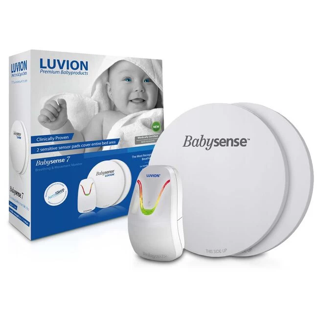 Met de Luvion Babysense kun je rustig gaan slapen zonder dat je je zorgen hoeft te maken over je kleintje. De Babysense is een sensormatje met zeer gevoelige sensoren, die gemakkelijk onder het matras te schuiven is. Het matje registreert door een geavanceerd algoritme de bewegingen van je baby. Op het moment dat er iets niet in orde is, gaat er een alarm af. Op die manier ben jij, ook al lig je te slapen, gelijk gewaarschuwd. De Babysense bestaat uit twee ronde sensormatjes, voor onder het matras en een control unit. Als er langer dan 20 seconden geen beweging geconstateerd wordt of als het aantal ademhalingsbewegingen daalt onder 10 per minuut, gaat het alarm af. De bediening is makkelijk en erg gebruiksvriendelijk. Door het gebruik van 1,5 Volt batterijen lopen er geen stroomkabels door het bedje. Dit matje wordt onder andere succesvol gebruikt in kraamklinieken en kinderdagverblijven.