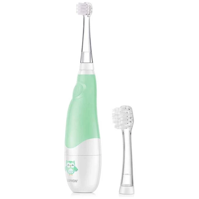 Met de Luvion elektrische tandenborstel voor de allerkleintjes help je de tandjes in optimale conditie te houden. De sonische (vibrerende) tandenborstel is speciaal ontworpen voor kleine tandjes van 0-4 jaar. Er zijn zachte borsteltjes voor de eerste 18 maanden en borsteltjes vanaf 18 maanden. Van beiden wordt er één meegeleverd.