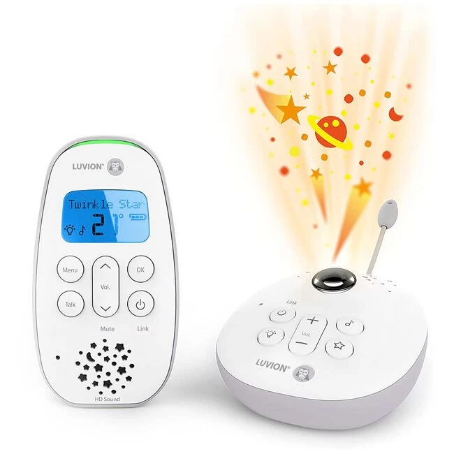 De Luvion Icon Clear 75 pro is een audio babyfoon met vele leuke opties. Creëer een rustgevende omgeving voor het slapen gaan met 18 prettige slaapliedjes en een prachtige sterrenhemelprojector. Dit model heeft een eenvoudig af te lezen display met blauwe achtergrondverlichting, bevat een terugspreekfunctie en buiten bereik waarschuwing. En dankzij de kamertemperatuur weergave kan je altijd zorgen voor de juiste temperatuur in de babykamer. Daarnaast heeft de babyfoon een bereik tot 350 meter, een lange batterijduur en geeft het een waarschuwing als de batterij bijna leeg is.
