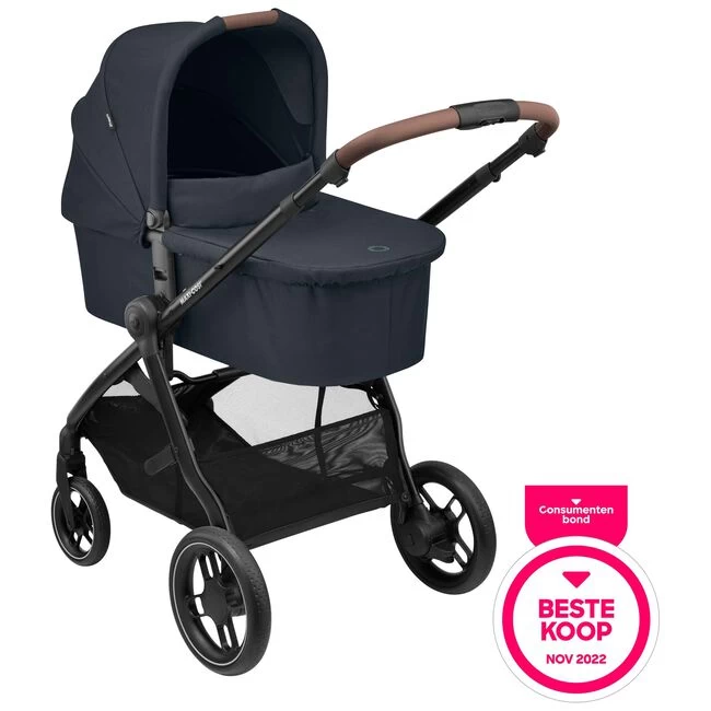 De Street+ zit vol slimme ideeën en maakt wonen in de stad aangenaam. Een compact met één hand inklapbaar systeem dat in twee richtingen kan worden opgevouwen en een enorme boodschappenmand. De Street+ is een complete oplossing vanaf de geboorte, compatibel met alle Maxi-Cosi-babyautostoeltjes (apart verkrijgbaar) en je kunt eenvoudig wisselen tussen reiswieg, autostoeltje of zitje. De ruime reiswieg biedt je baby het ultieme comfort, en de gevoerde omkeerbare zitting biedt ruimte om te groeien.De eenvoudig te manoeuvreren en schokabsorberende 4-wielvering en anti-lek wielen zorgen voor een soepele rit door de stad.