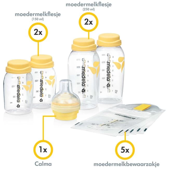 Deze set is de perfecte aanvulling op alle Medela borstkolven. Met Calma kun je je baby op een natuurlijke manier voeden, zoals ze dat aan de borst hebben geleerd. Dat zorgt voor een moeiteloze wisseling tussen borst en fles. Je kunt je moedermelk gemakkelijk opvangen en bewaren met de vier moedermelkflesjes (twee flesjes van 150 ml en twee flesjes van 250 ml) en vijf Pump & Save moedermelkzakjes in de set. Alle producten zijn BPA-vrij en dus veilig voor het opvangen, bewaren en voeden van moedermelk.