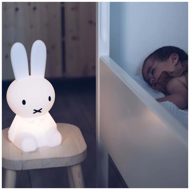 Nijntje, een icoon die niet meer weg te denken is in iedere kinderkamer. Deze Nijntje lamp is dimbaar en kan dus worden gebruikt voor verschillende momenten. Bijvoorbeeld bij het voorlezen van een boekje, voor een nachtvoeding of als waaklichtje tijdens de nacht. De Nijntje lamp is draadloos en kan dus gerust mee uit logeren. Het is gemaakt van een zachte siliconen, wordt geleverd met een USB-oplaadkabel en heeft de afmetingen: 30x20x20 cm