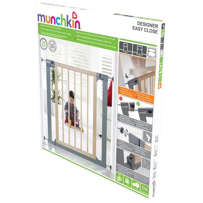 Met dit easy close traphekje van Munchkin, kun je er echt van op aan dat je kindje veilig is. Het hekje heeft een push to shut – sluitmechanisme, hierdoor is het makkelijk met een hand te openen. Dit veiligheidshek met drukbevestiging (zonder boren) is geschikt voor doorgangen van 75 cm tot 82 cm en kan verlengt worden tot 138 cm met verlengstukken. Het hekje kan in twee richtingen worden geopend en de drukindicator geeft aan of het goed gesloten is. Het eigentijdse ontwerp in hout en metaal ziet er modern uit en is ontworpen on naadloos in het interieur te passen. Het traphekje voldoet aan de gestelde veiligheidsnorm.
