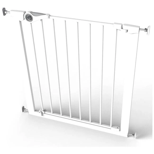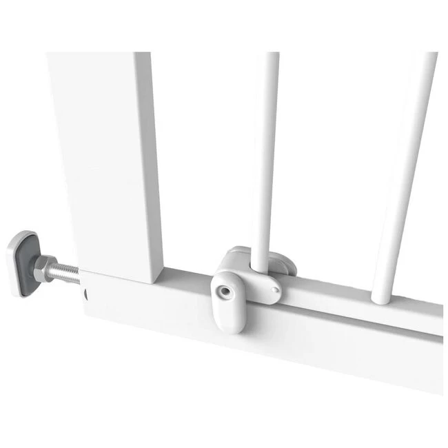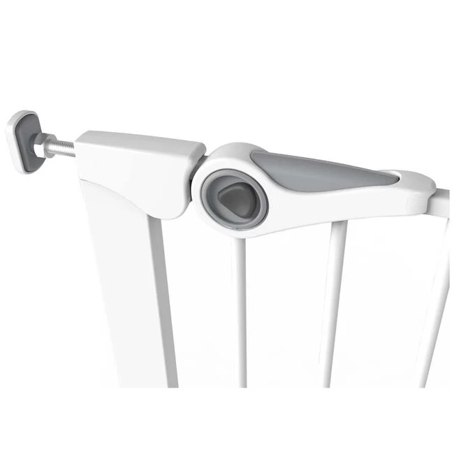 Dit Noma klemhek wordt met drukpunten tegen de muren/deurstijlen vastgedrukt. Je hoeft dus geen gaten te boren met dit traphekje! Het hekje kan naar 1 of 2 richtingen geopend worden voor optimale flexibiliteit. Het hekje past in deur- en trapopeningen met een breedte van 75 en 82 cm. Het klemhek is 75 cm hoog. Met de los verkrijgbare verlengdelen van Noma kan je dit hekje verlengen. Deze verlengstukken zijn verkrijgbaar in 7, 14 en 28 cm.