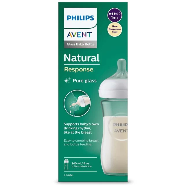 Deze glazen fles van philips avent volgt het unieke drinkritme van je baby.