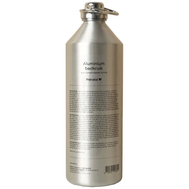 De Prénatal aluminium kruik, 2 pack, is ideaal om het bedje van je kindje voor te verwarmen. Haal de kruik uit bed wanneer je kindje naar bed gaat. Je baby zal snel en heerlijk in slaap vallen. De kruik heeft een inhoud van 1 liter. Met een lengte van 25 cm past deze kruik in een standaard kruikenzak. Na gebruik de kruik altijd legen en laten drogen. De kruik droog en vorstvrij bewaren. Dit is van groot belang om de kruik in goede conditie te houden en roesten (oxidatie) te voorkomen welke kan leiden tot beschadigingen aan de kruik. LET OP: Volg altijd het bewaaradvies van de kruik strikt op en bewaar de handleiding. Deze verpakking bevat 2 stuks. WAARSCHUWING: Het rubbertje in de kruikdop kan loslaten en aan de kruik vastzitten bij afkoeling van de kruik. Deze is makkelijk weer terug te duwen in de kruikdop. Tevens verkopen wij ook losse kruikdoppen (5668735)