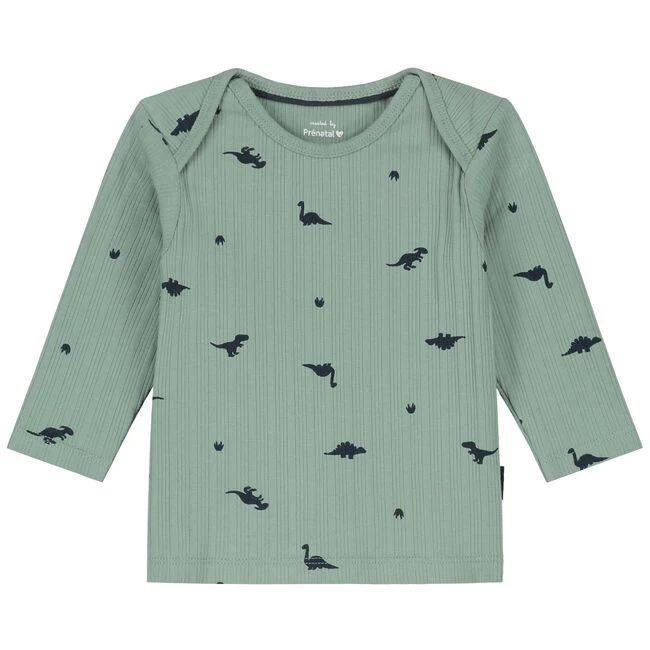 Deze Prénatal baby pyjama is gemaakt van een mooie rib kwaliteit en is groen van kleur met een leuke all over dino print. Door de envelophals is het pyjamaatje gemakkelijk aan en uit te trekken bij je kleintje. De pyjama sluit aan bij het Dino thema van Prénatal. Wasvoorschrift: binnenstebuiten wassen op 30 graden met gelijke kleuren. TOG waarde: 0.5 TOG.