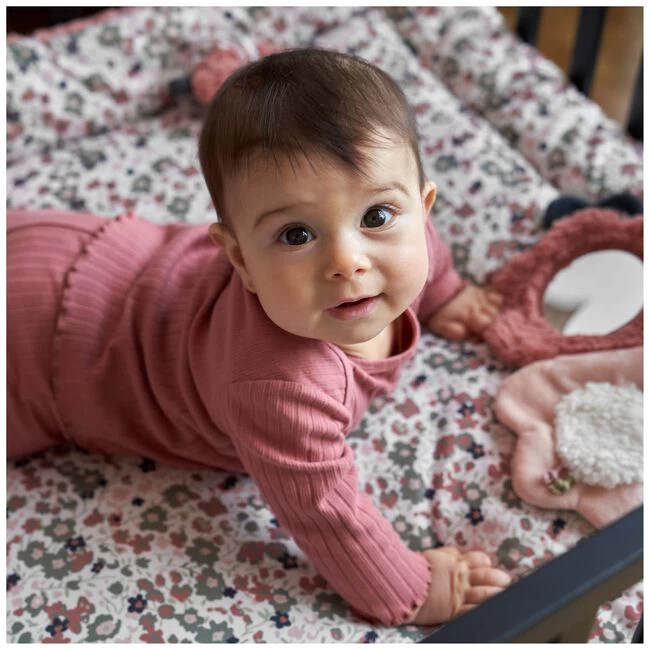 Dit boxkleed van Prénatal is heerlijk zacht, aan de ene zijde is een roze teddy stof gebruikt wat het kleed nog comfortabelere maakt om op te liggen voor je kleitnje. Het bloemen moetief op de andere zijde past perfect bij de Flowers are forever lijn van Prénatal. De afmetingen van dit kleed zijn circa 97x77cm.