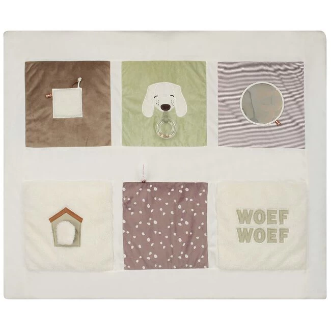 Dit Prénatal boxkleed past perfect bij het thema Snuffel de Tekkel. Snuffel zal binnen no time het nieuwe beste vriendje worden van je kleintje. Het kleed is internactief door een spiegeltje, rammelaar, kraak geluidjes en verschillende labeltjes die je kleintje stimuleren om op ontdekking te gaan. Het kleed heeft een standaardafmeting van 97xcm bij 79cm.