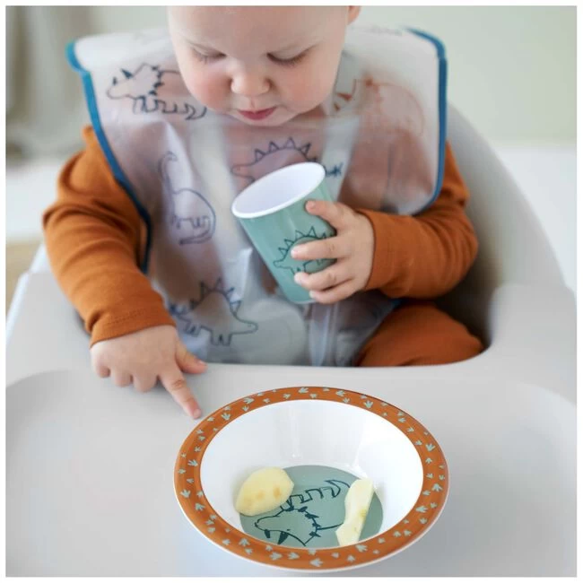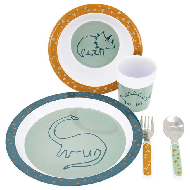 Met de Dino eetset van Prénatal wordt eten echt een feestje! De eetset bevat een beker, kom, bestekje en bordje. Dit eetsetje is gemaakt van melamine en is uitgevoerd in het Prénatal Dino thema. Deze eetset is geschikt voor gebruik van: -10° tot max + 70°C.