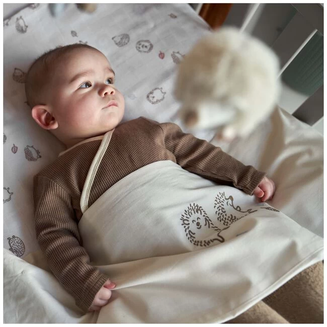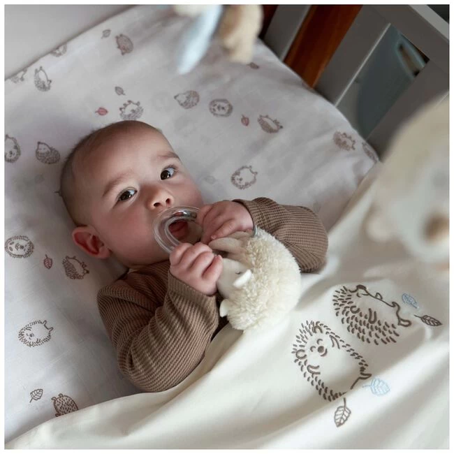 Deze mooie ledikantlaken van Prénatal komt uit het thema Forest Friend. Het lakentje is gemaakt van biologisch katoen en heeft een lief printje van een egeltje. Leuk te combineren met een Prénatal deken. Afmeting 100 x 120 cm. Wasbaar op 30 graden. Let op: het originele artikel heeft de egeltjes op zijn kop – dit wijkt af met het beeld dat online wordt getoond.