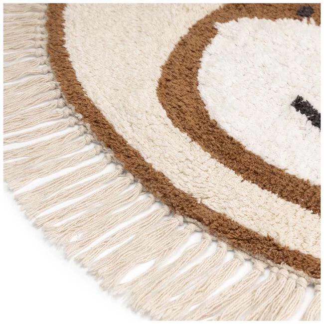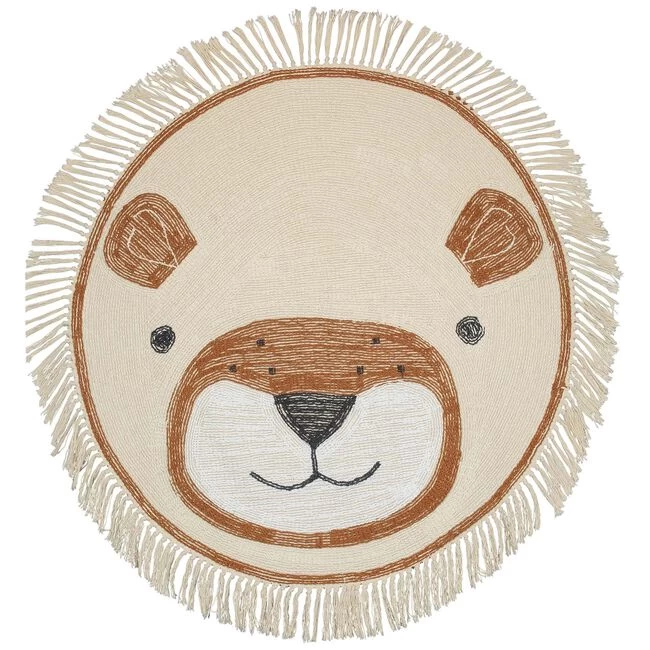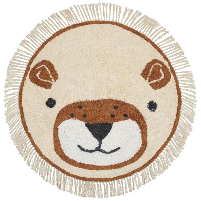 Dit mooie vloerkleed van Prénatal is lekker zacht en dankzij de mooie warme basis kleur passend in elk babykamertje. Dit kleedje is in de vorm van een leeuwen kop. Bij dit vloerkleed zijn ook woonaccessoires verkrijgbaar, zodat je de kamer van je kindje passend kan stylen. Dit vloerkleed is onderdeel van het thema Tiny WildLife. De doorsnede van het vloerkleed is 94 cm (exclusief franjes) en hij is gemaakt van 100% katoen. Het vloerkleed kan in de wasmachine op maximaal 30 graden, met mild wasmiddel. Het beste is om het vloerkleed met een tapijtreiniger schoon te maken. Laat hem drogen en doe hem daarna nog even kort (5 min.) in de droger, zodat hij lekker zacht blijft.