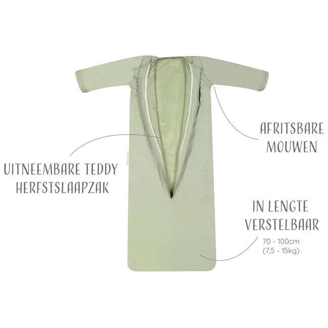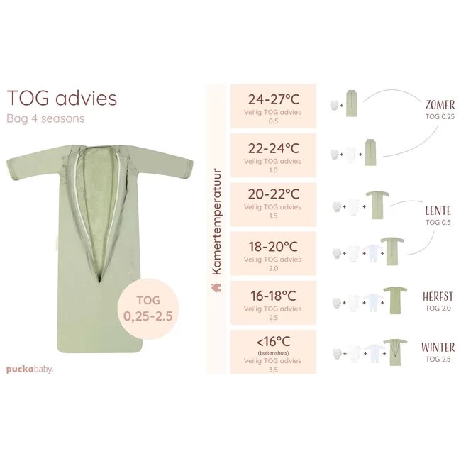 De 4 seizoenen slaapzak van het merk Puckababy is de meest ideale slaapzak voor alle kindjes, en met name voor de onrustige slapertjes. De Puckababy The Bag 4 Seasons biedt veel comfort. Een slaapzak die het hele jaar door is aan te passen op de warmte van en rondom je kindje. De slaapzak is te gebruiken vanaf 6 maanden en is door zijn verstelbare lengte te gebruiken tot minimaal 2,5 jaar. De slaapzak heeft een totale lengte van 100cm. De slaapzak is voor elk seizoen te gebruiken dankzij de afneembare mouwen.
