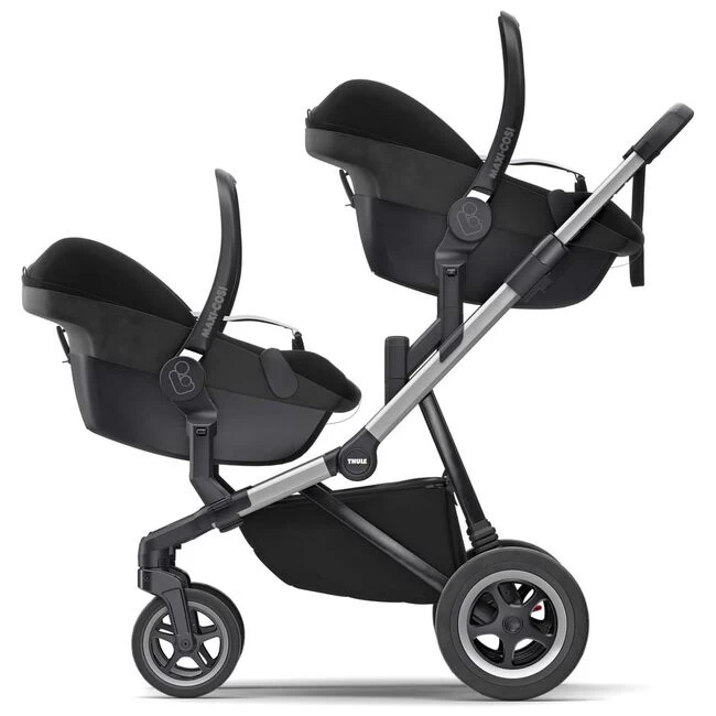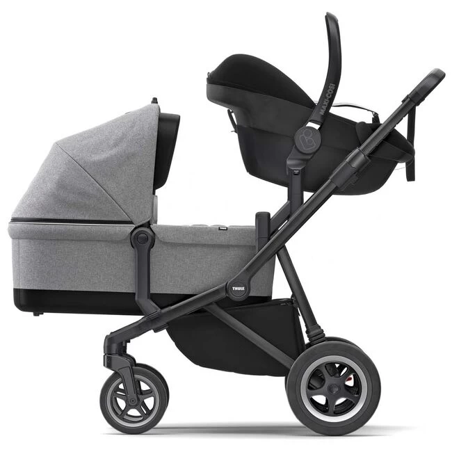 Ga van auto naar kinderwagen met een adapter waarmee u snel en gemakkelijk een autostoeltje bevestigt aan uw Thule Sleek kinderwagen. Gemakkelijk kliksysteem voor installatie en verwijdering van uw autostoeltje. Geschikt voor verscheidene autostoeltjes van Maxi-Cosi, Cybex en Nuna.