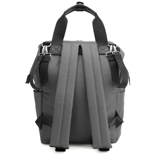 Met deze mooie luiertas rugzak heb je altijd je beide handen vrij. Ideaal voor dagelijks gebruik! De verzorgingstas heeft een dokterssluiting, waardoor de tas blijft openstaan als je de tas open doet. Aan de voorzijde heeft de tas één groot vak welke afgesloten kan worden met een rits en twee zijvakken voor bijvoorbeeld een flesje water. Aan de binnenzijde heeft de tas zes opbergvakken, waarvan één vak met een ritssluiting en één vak met een thermo vulling voor het warmhouden van een flesje. Bij de tas worden een gewatteerd verschoningsmatje en stroller straps geleverd waarmee je de tas makkelijk aan de duwstang van de kinderwagen hangt. Afmetingen tas (lxbxh): 15,5 x 27 x 38 cm. Materiaal buitenkant: 100% polyester. Materiaal binnenkant: 100% katoen.