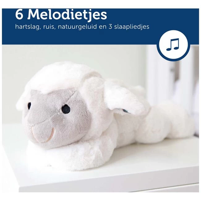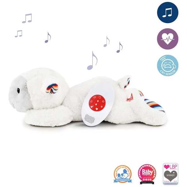 De Zazu Heartbeart Liz kan een hartslag, een watervalgeluid of 4 liedjes afspelen. Het knuffeltje schakelt automatisch aan als je baby huilt. De Zazu Heartbeat Liz is gemakkelijk in te schakelen door even te schudden en schakelt automatisch uit na 10 minuten. Stel je eigen geluidsniveau in. Het knuffeltje werkt met 2 x AA batterijen (niet inbegrepen) en is wasmachine bestendig zonder geluidsmodule.