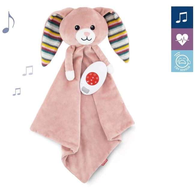 Dit leuke en schattige knuffeldoekje van Zazu is het nieuwe zachte vriendje van je kindje. Dit knuffeldoekje is niet alleen heel fijn, maar heeft ook nog bijzondere functie. In het knuffeldoekje kan een geluidsmodule worden gestopt. De geluidsmodule kan hartslag geluid, white noise, natuurgeluiden of een loop van 3 slaapliedjes afspelen. De muziek module schakelt automatisch uit naar 10 minuten, maar springt weer aan zodra je kindje begint met huilen. Met de speenhouder is het knuffeldoekje gemakkelijk vast te maken aan het speentje van je kindje en met het klittenbandje kan het knuffeltje worden bevestigd aan de kinderwagen/autostoel. Het knuffeltje is met en zonder de geluidsmodule te gebruiken. Zonder de geluidsmodule is het knuffeldoekje wasbaar. Knuffeldoekje Becky en Robin zijn verkrijgbaar bij Prénatal.
