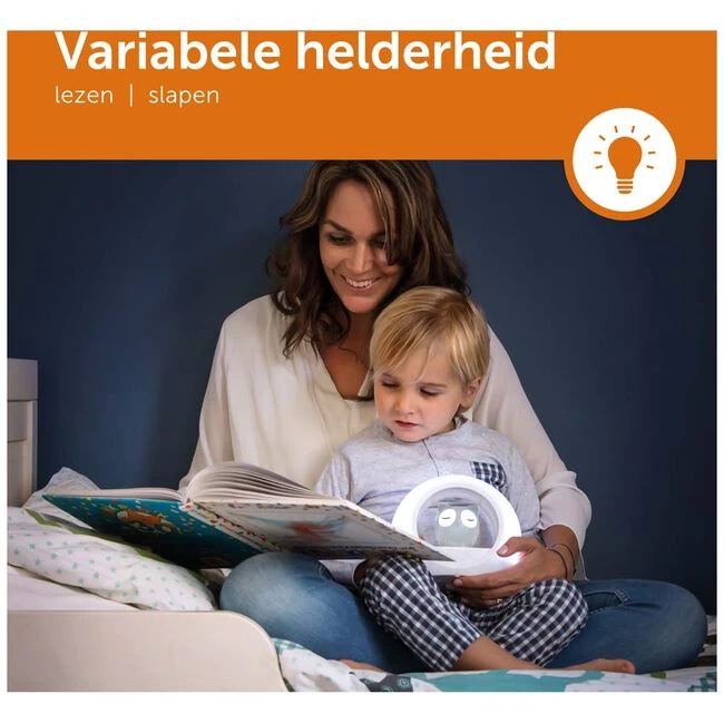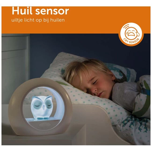 Zazu nachtlampje Lou heeft twee afzonderlijke lampjes, de ring en het uiltje. De lampjes zijn afzonderlijk te bedienen. Je kan ze afzonderlijk aan en uit zetten, dimmen en de timer-functie bedienen. Bovendien heeft Lou een lampje dat automatisch aan gaat als jouw kleintje huilt en gaat vanzelf weer uit als het stil is. Het Zazu nachtlampje Lou werkt zowel met een USB kabel (inbegrepen exclusief stekker) als op batterijen (niet meegeleverd). Afmeting: 14 x 12 x 8 cm. Kleur: grijs