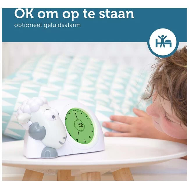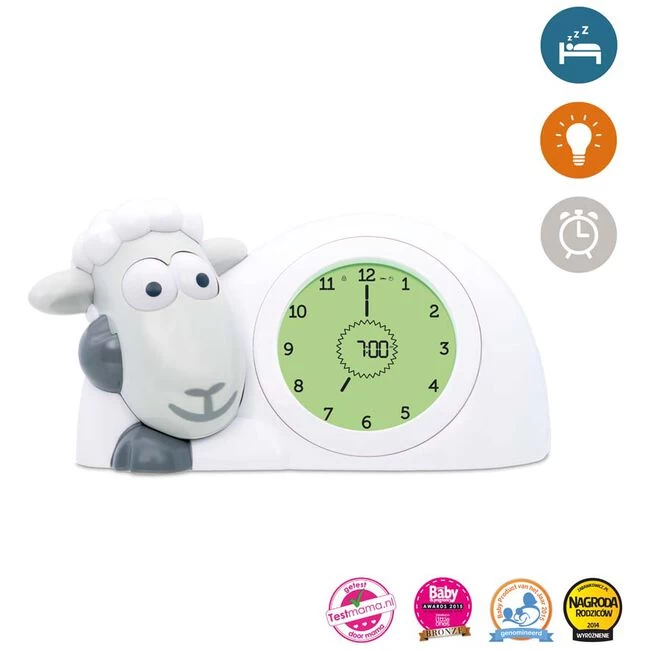 De Zazu slaaptrainer Sam helpt jouw kleintje wennen aan het tijdsbesef van ‘grote mensen’. Op een eenvoudige manier laat Sam de slaaptrainer zien wanneer jouw kleintje uit bed mag. Hoe werkt de slaaptrainer? Sam gaat slapen wanneer jouw kindje ook gaat slapen, hij sluit zijn ogen en het scherm op zijn buik wordt donker. Een halfuur voordat Sam wakker wordt veranderd het scherm op zijn buik en zullen de 12 sterretjes 1 voor 1 verdwijnen, en zo de 30 minuten aftellen. Zodra je kindje uit bed mag, opent Sam zijn ogen, het scherm kleurt wit er er verschijnt een zon. Het tijdstip waarom dit gebeurt kan zelf ingesteld worden en maakt geen geluid. Sam heeft daarnaast twee tijdsinstellingen (handig voor het middagslaapje!) Het LCD scherm kan ook de gehele nacht blijven branden als nachtlampje. De Zazu slaaptrainer Sam werkt zowel op een adaptor (meegeleverde USB kabel) en batterijen (niet meegeleverd). Afmeting: 20 x 12 x 14cm. LCD-scherm: 7 cm. Kleur: grijs